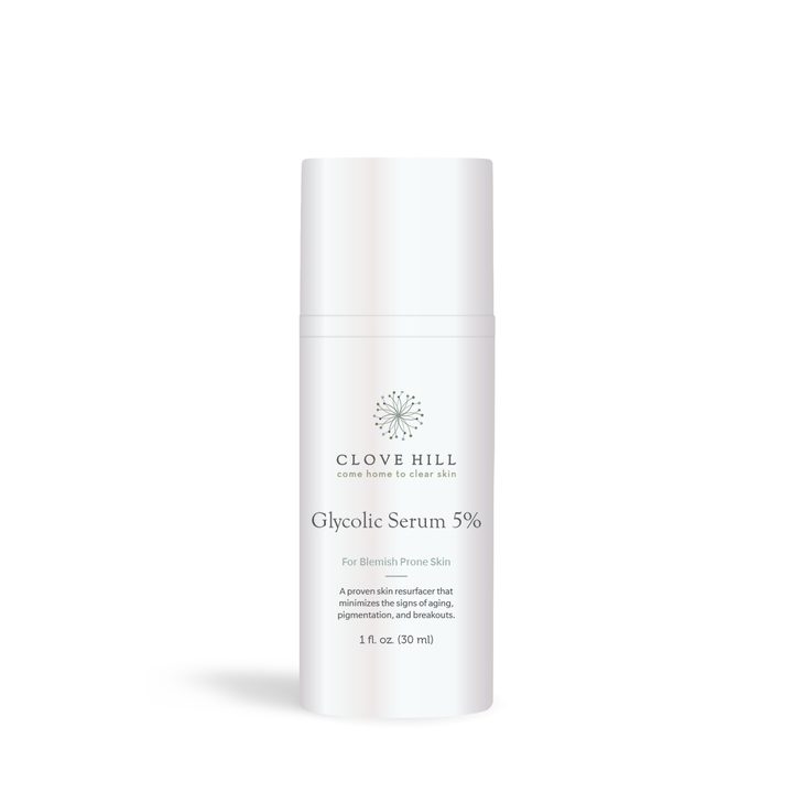 Clove Hill Glycolic 5% is a proven skin resurfacer formulated with 5% glycolic acid to effectively minimize the signs of aging, pigmentation, and breakouts. This gentle yet powerful serum promotes cell turnover, smooths skin texture, and reveals a brighter, clearer complexion.