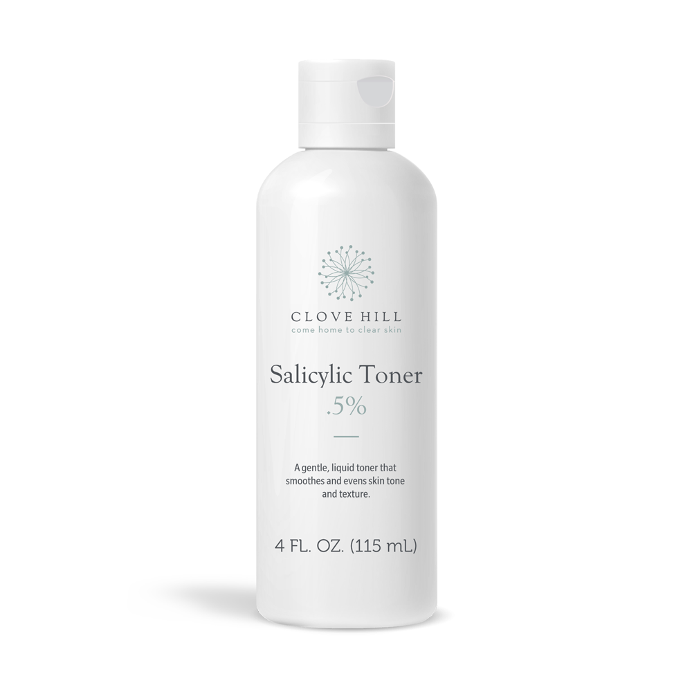 A lower concentration of our Clove Hill Clarifying Toner, the Clove Hill Salicylic Toner .5% contains a lower concentration of this primary active ingredient.